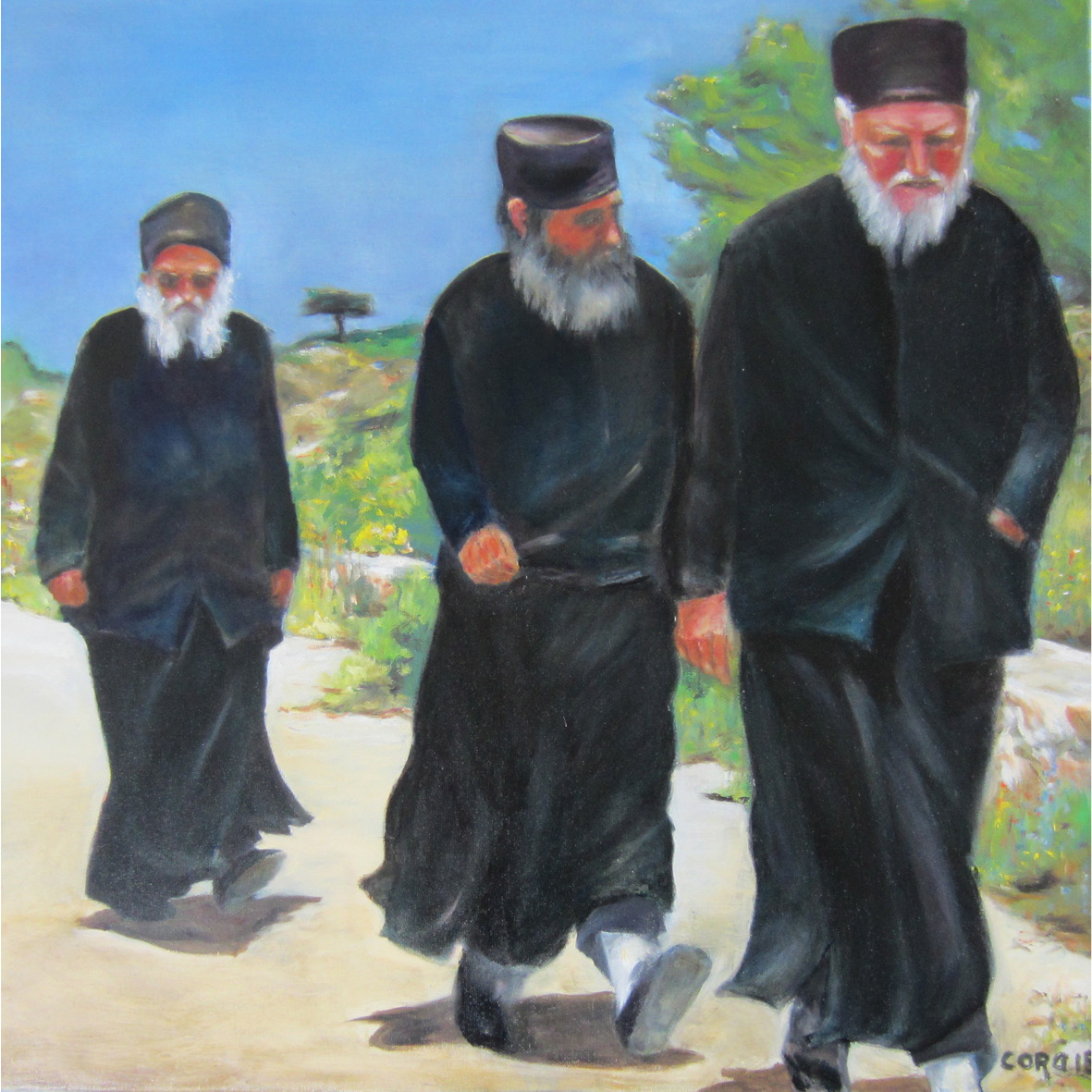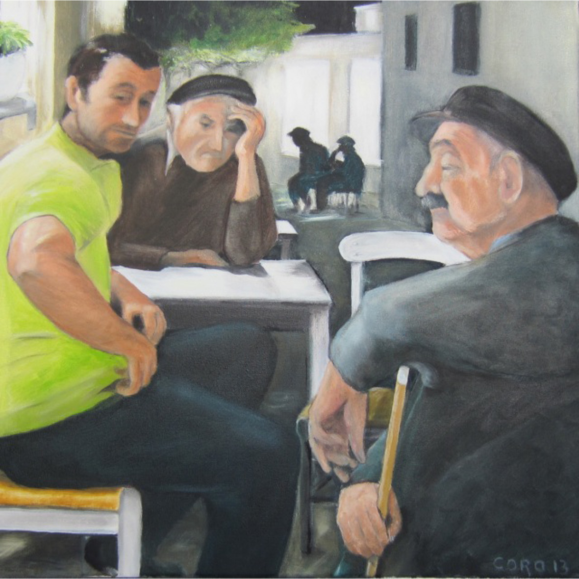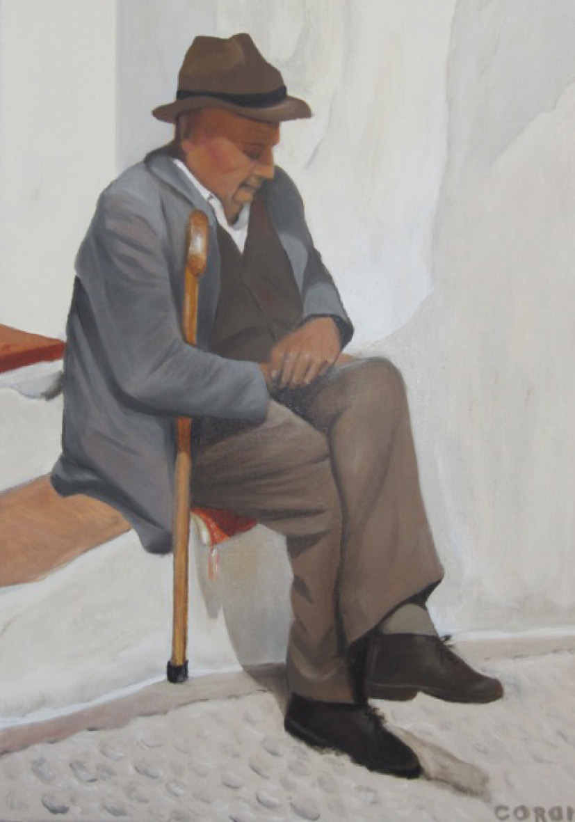 Oude Griek voor zijn huis